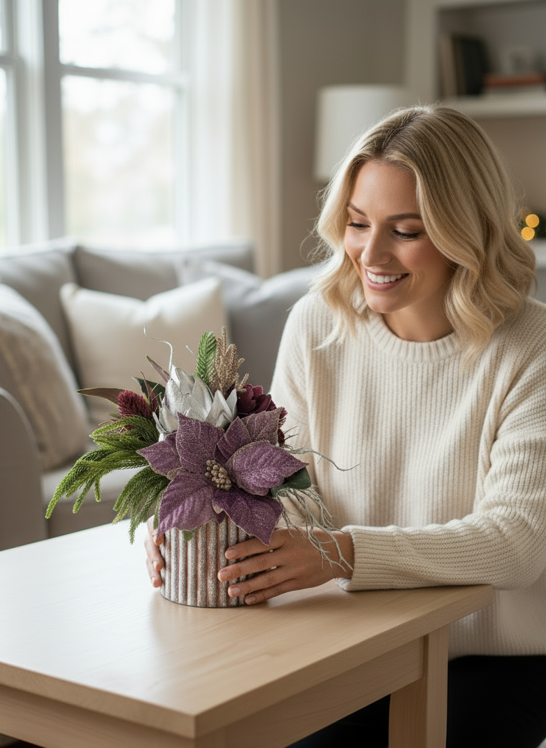 Perfect as a dining table highlight, mantle accent, or thoughtful Christmas gift, this arrangement is designed to last year after year—bringing warmth, sparkle, and sophistication to your holiday décor.